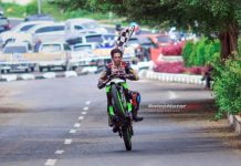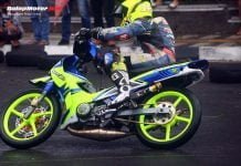 “Jujur saya belum yakin dengan motor ini. Tapi kata Erfin tadi udah lumayan enak. Gak jauh dengan Yamaha 125Z. Cuma masih ada kendala pada gear dan shok belakang,” lanjut kang Dodok yang gunakan knalpot udang asli Daytona.