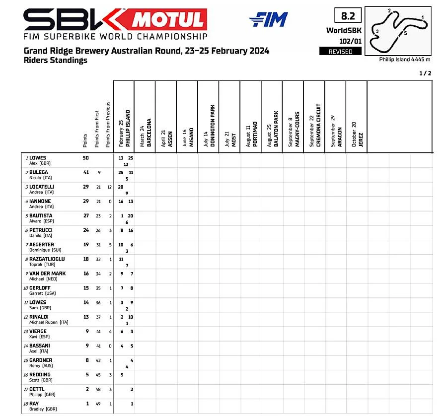 Ia sekarang menempati posisi keempat klasemen sementara. Pada tes di Catalunya tengah pekan lalu, pembalap yang menggunakan Ducati Panigale V4R itu juga tampil bagus dan berada di urutan ke-4.