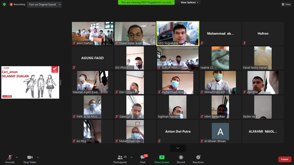 Sebagian besar peserta edukasi safety riding pada periode Januari – Mei 2021 ini didominasi oleh kalangan pelajar, disusul oleh komunitas bikers, dan masyarakat umum. Sekolah-sekolah yang telah berkolaborasi dalam edukasi safety riding secara online antara lain adalah sebagai berikut SMK Pancasila Kutoarjo, SMK Maarif Magelang, SMK Yayasan Pendidikan Teknologi 2 Purbalingga, SMK Muhamadiyah Sumpiuh, SMK Taruna Abdi Bangsa Kebumen, SMK Muhamadiyah Ajibarang, SMK Muhamadiyah Sumpiuh, SMK Muhamadiyah Sampang, SMK Muhamadiyah Patuk, SMK Muhamadiyah 3 Purwokerto, SMK Maarif 1 Wates, SMK Manggalatama Binangun Cilacap, SMK Bhumi Phala Parakan, dan SMK NU Bobotsari.