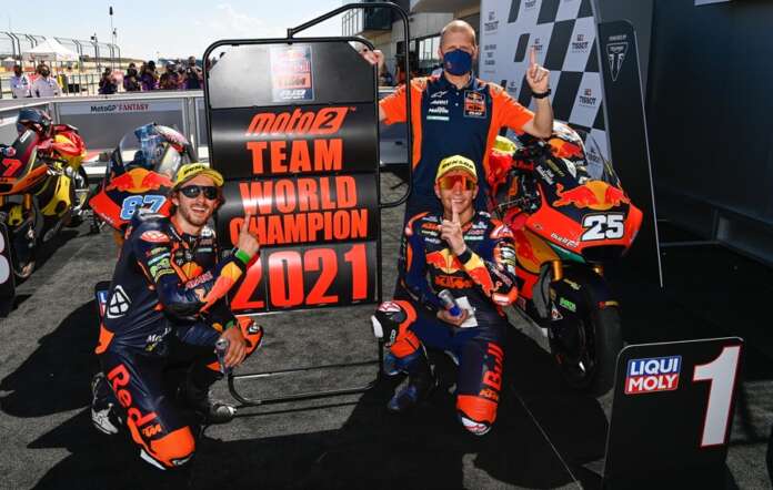 Disisi lain, dengan double podium kelimanya musim ini membuat Red Bull KTM Ajo menjadi tim terbaik di Moto2. Poin mereka begitu menawan dan tidak akan terkejar lagi sampai akhir musim. KTM pun akan memberikan hadiah kepada dua pembalap ini di Misano. Yaitu tes pertama dengan pacuan RC16.