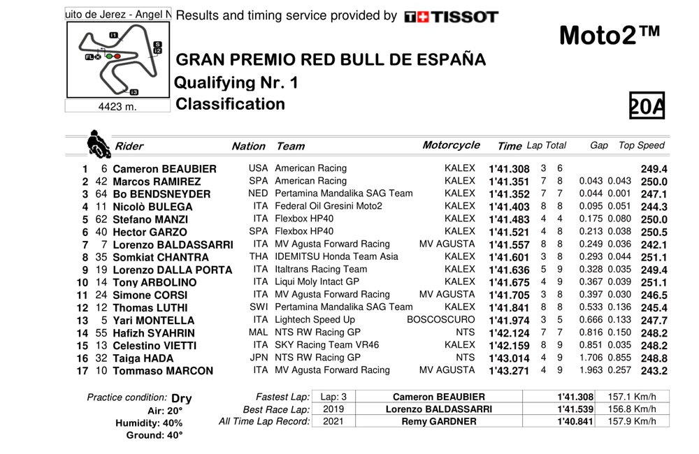 Berikut hasil Q1 dan Q2 Moto2 Jerez 2021: