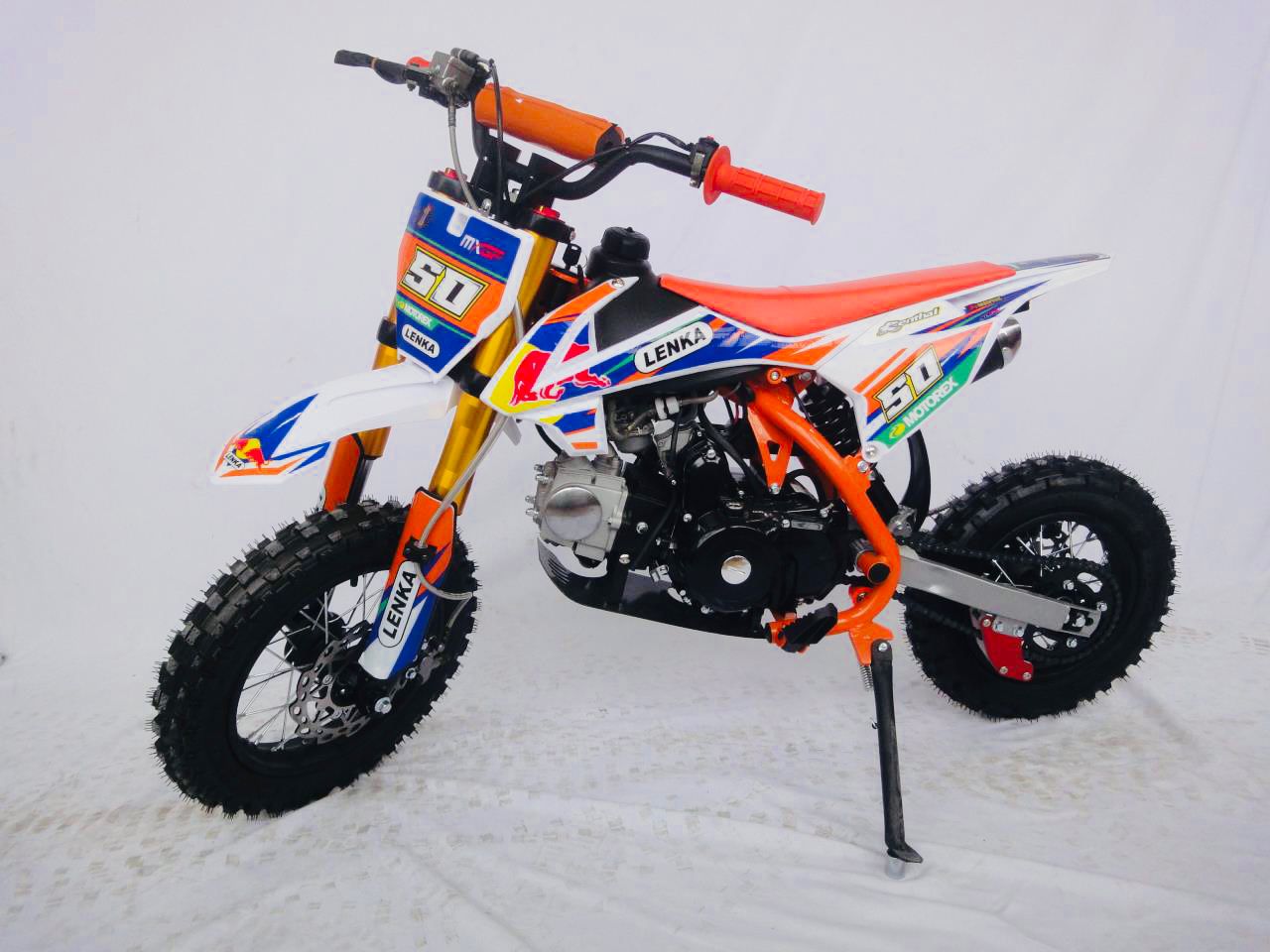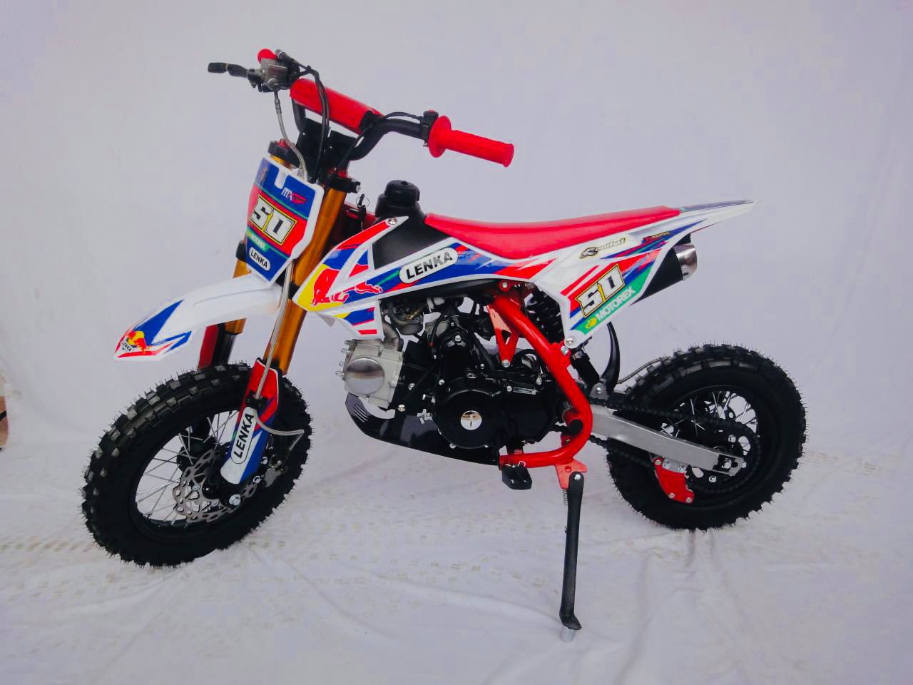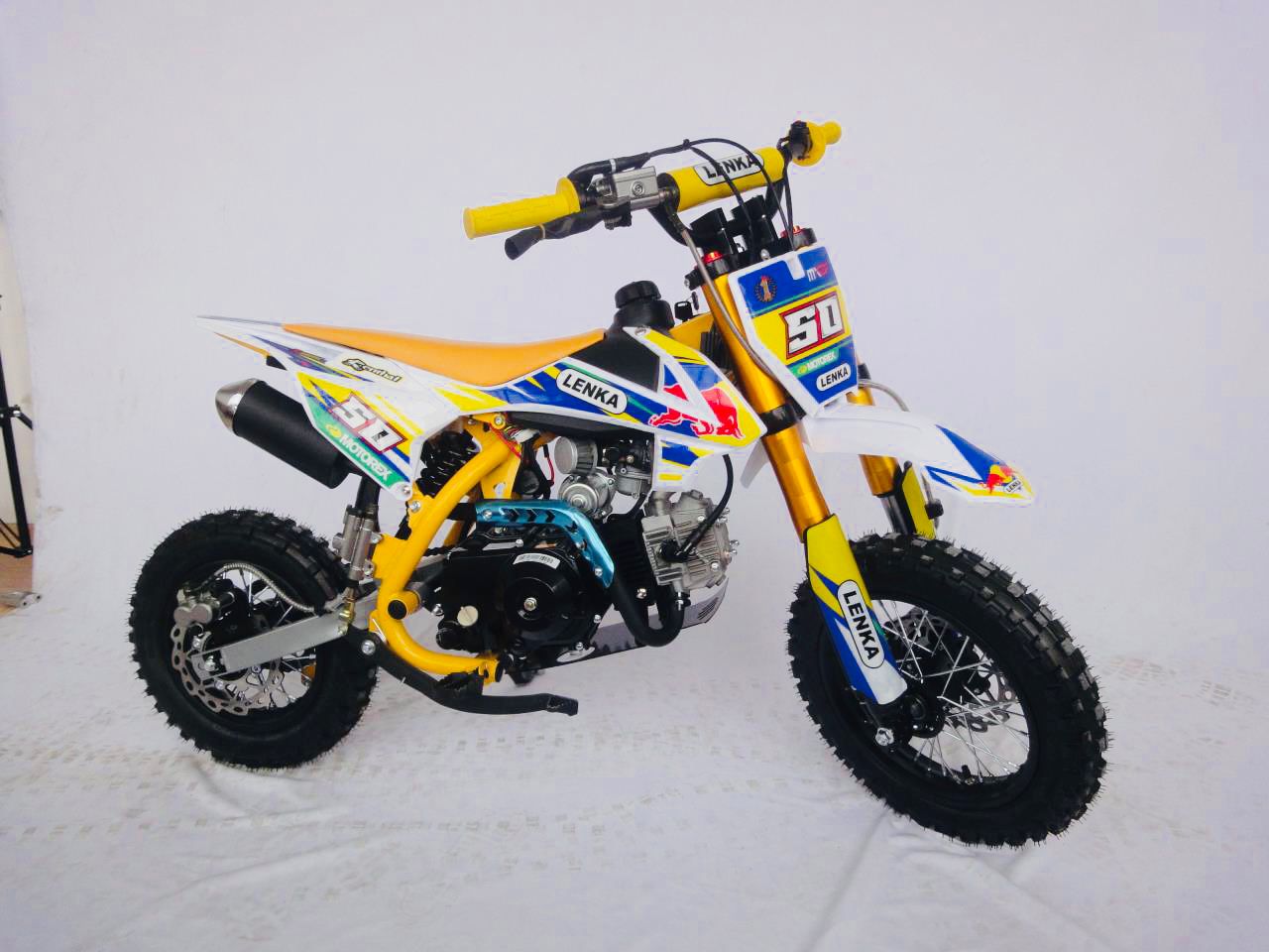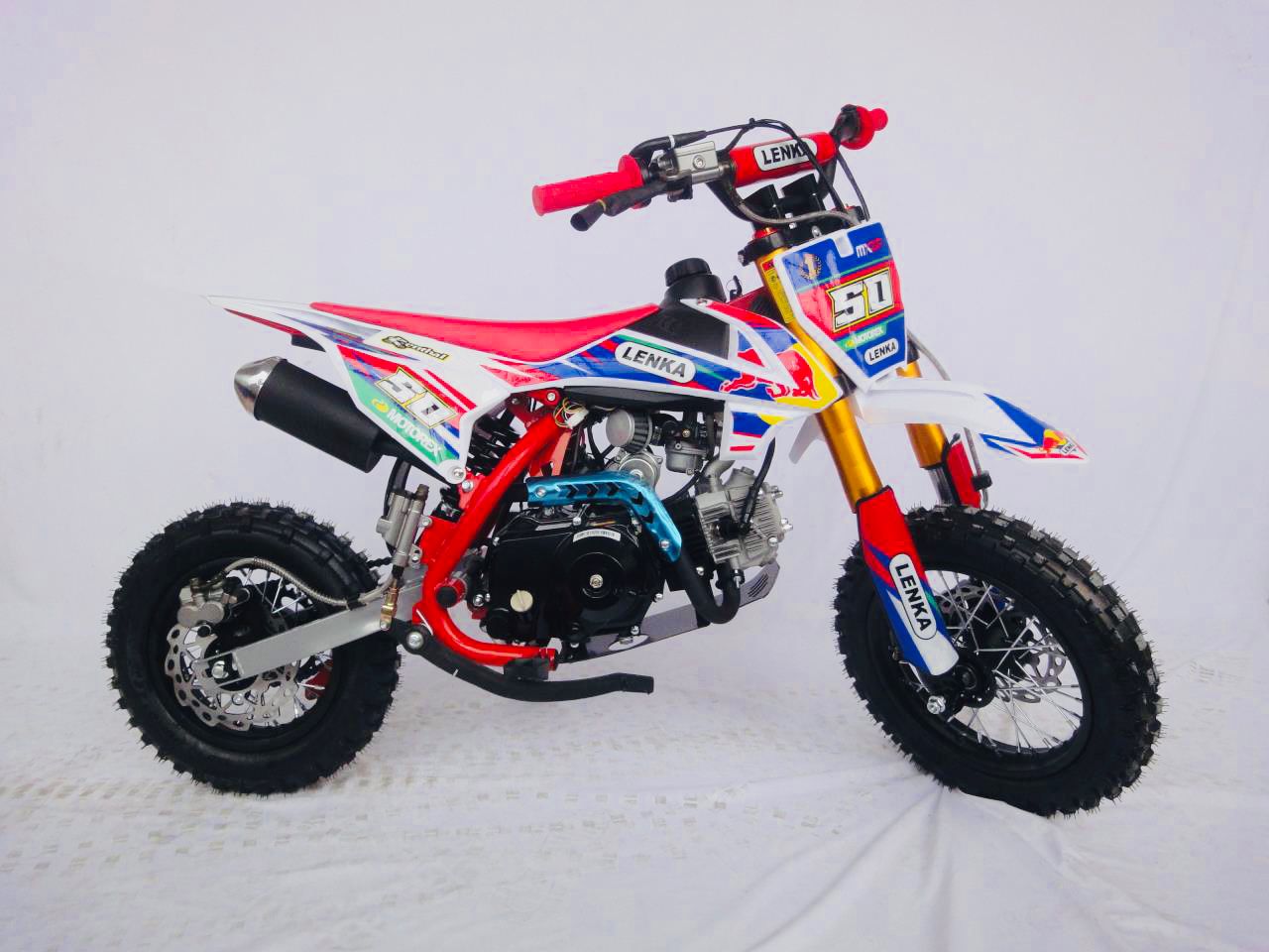 Motor LENKA Mini Trail 50cc ini juga hadir dengan tiga pilihan warna yang kental dengan nuansa ala Motocross. Pastinya membuat si anak semakin pede untuk menggunakannya.