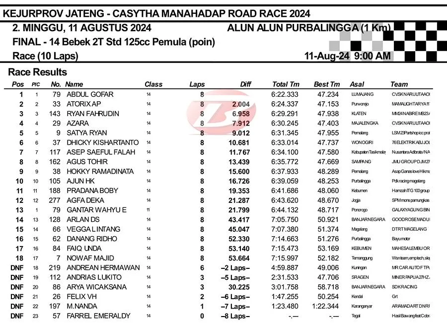 BalapMotor.Net – FizR besutan Abdul Gofar berhasil meraih dua kemenangan pada putaran kedua Kejurprov Jateng Casytha Manahadap Road Race Championship 2024 yang berlangsung di Purbalingga.