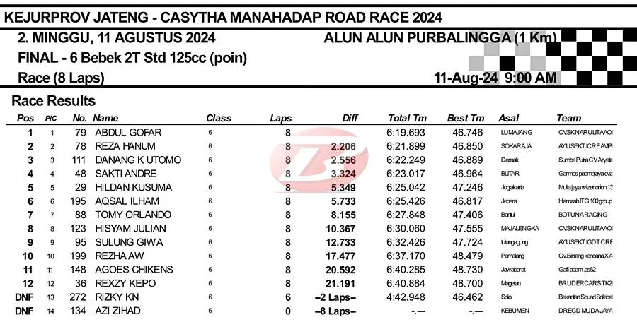 BalapMotor.Net – FizR besutan Abdul Gofar berhasil meraih dua kemenangan pada putaran kedua Kejurprov Jateng Casytha Manahadap Road Race Championship 2024 yang berlangsung di Purbalingga.