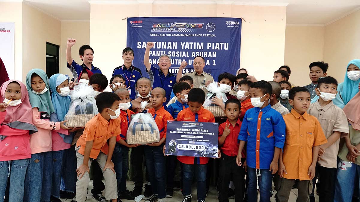 “Tim Yamaha Racing Indonesia berhasil meraih podium 1 pada event SHELL bLU cRU Yamaha Endurance Festival 2022 dan meraih podium 4 pada event yang sama di tahun 2021. Kami mendapatkan hadiah uang tunai atas kemenangan kami. Namun, kami ingin hadiah tersebut berguna untuk Indonesia. Maka dari itu, kami donasikan kepada panti asuhan dalam bentuk sembako, vitamin dan kebutuhan pokok lainnya. Semoga donasi ini dapat memberikan kekuatan untuk anak-anak di panti asuhan,” ungkap Minoru Morimoto selaku Presiden Direktur dan CEO PT. Yamaha Indonesia Motor Manufacturing (YIMM).