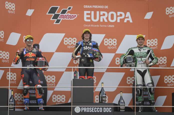 BalapMotor.Net – Race Moto2 Eropa 2020 telah usai di hari sabtu (08/11). Pada race tersebut, Marco Bezzecchi sukses menjadi jawara di kelas Moto2 pada gelaran MotoGP Eropa 2020.