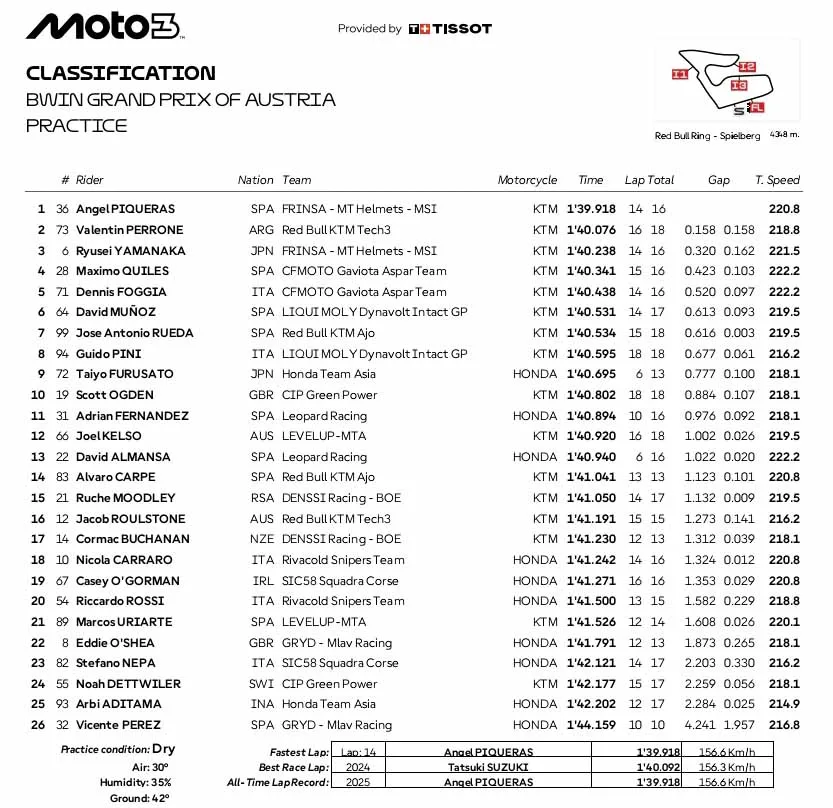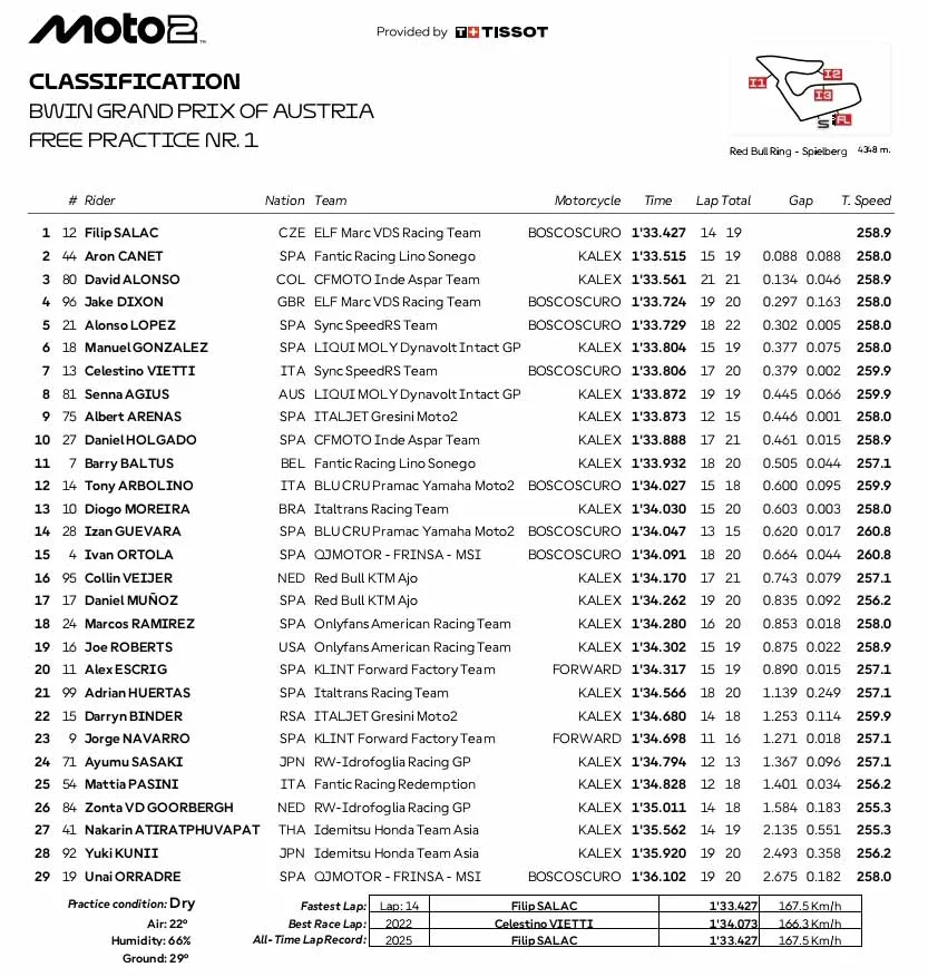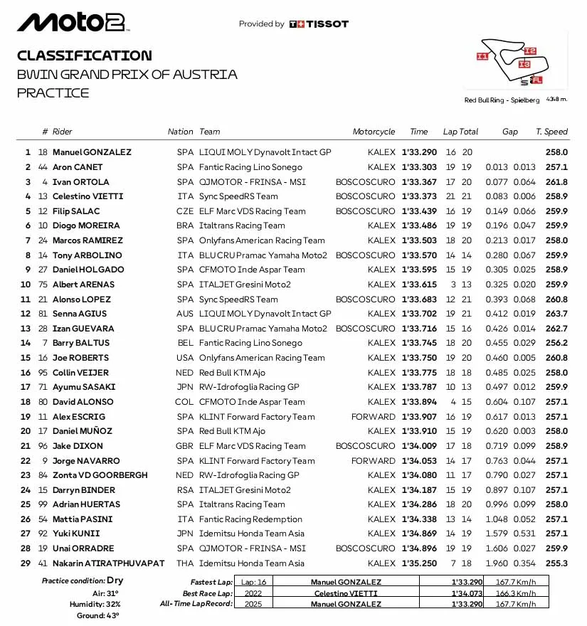 Nah, berikut hasil lengkap practice MotoGP, Moto2 dan Moto3 Austria 2025: