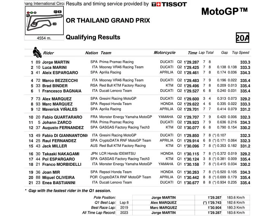 Martin Pole Position Lagi! Catat Rekor Baru di MotoGP Thailand 2023