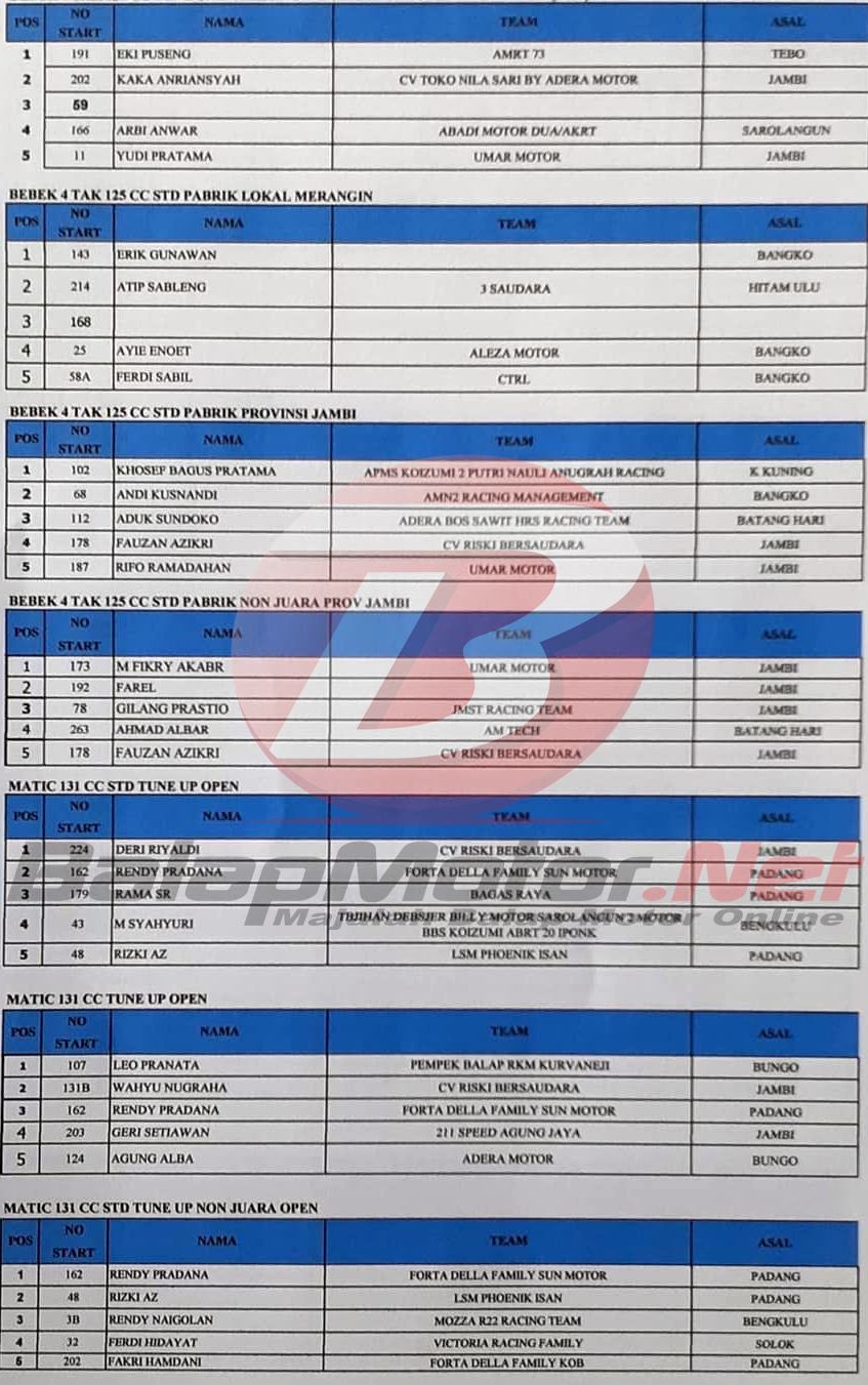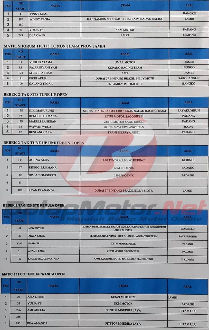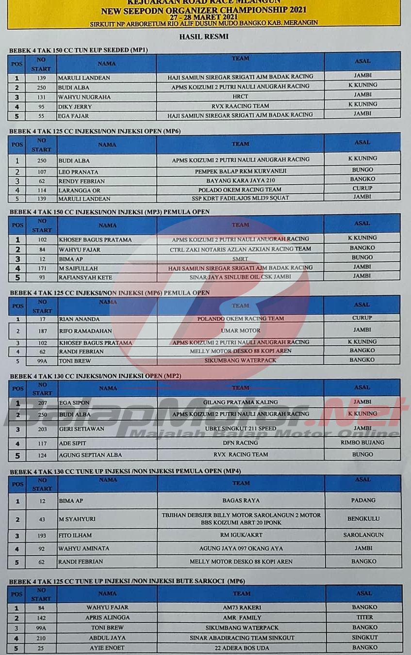 “Untuk persiapan motor semua serba mendadak mas, dengan waktu 2 hari untuk repair, untuk motor yang di pakai Maruli hanya perubahan di bagian noken , sedangkan motor yang di pakai Ega spek MP 1 masih spek lama gak ada perubahan, untuk hasil alhamdulilah signifikan mas,” ujar Iwan Daenk.| Halim