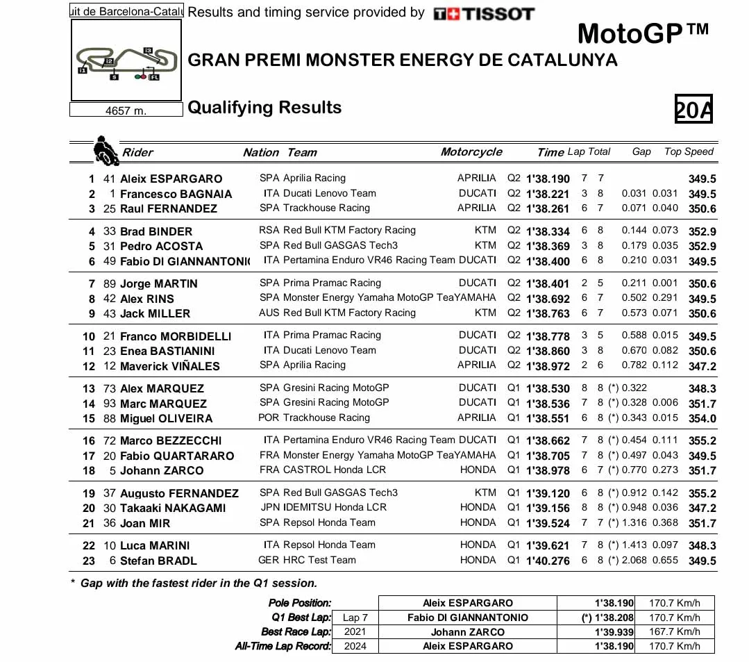 Hasil Kualifikasi MotoGP Catalunya 2024: