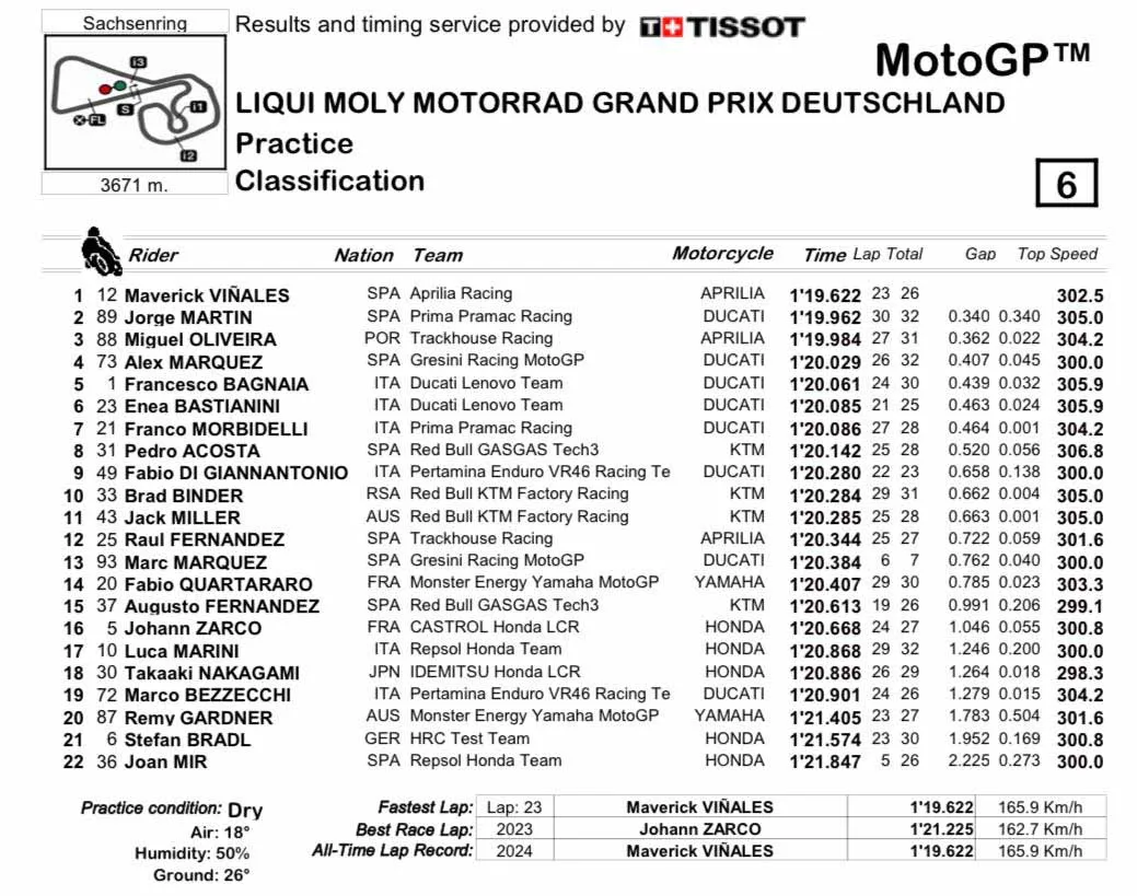 Hasil Practice MotoGP Jerman 2024: