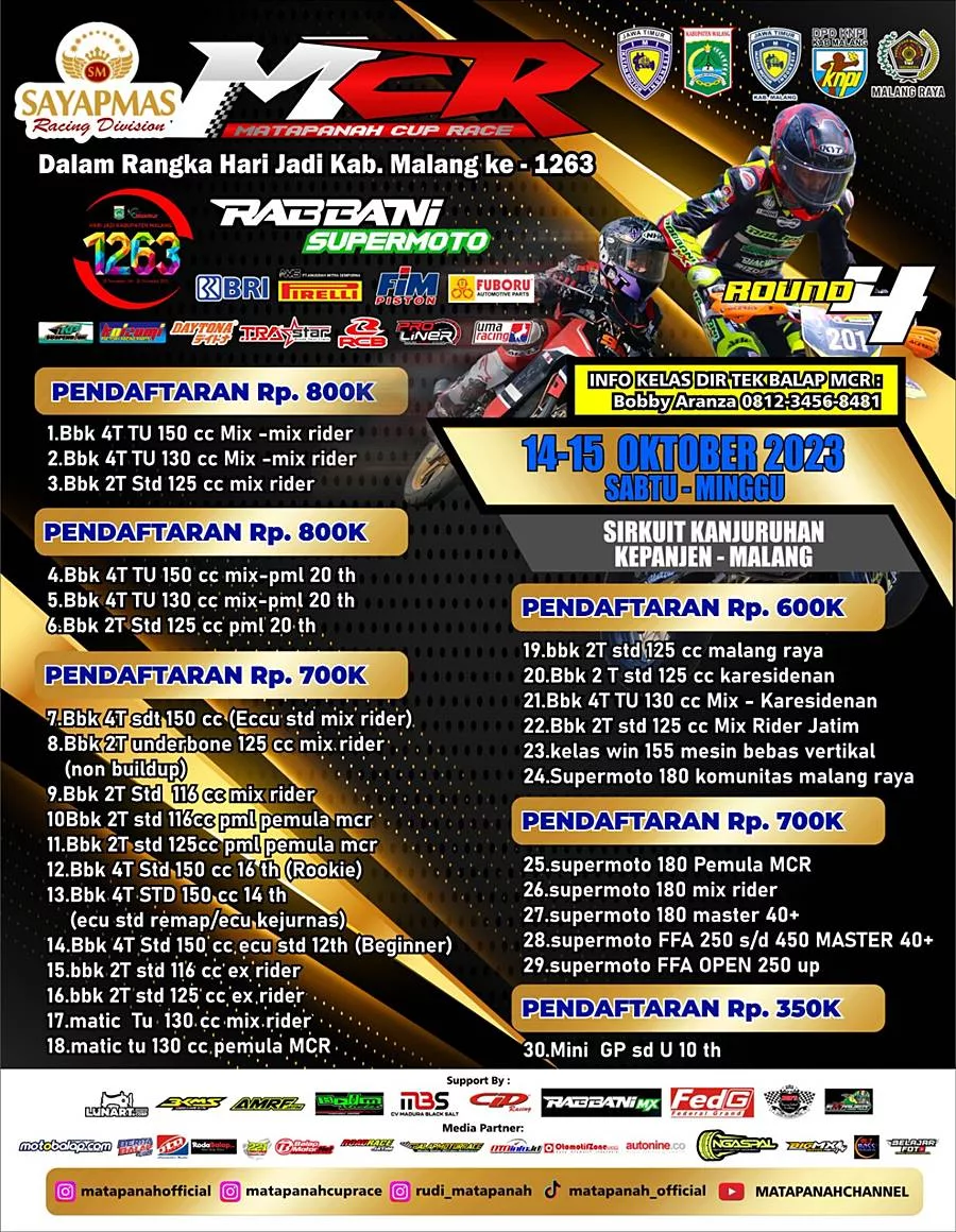 Seri 4 ini ada penambahan kelas Supermoto yang jika dilihat memang lebih banyak dari seri sebelumnya, mengingat basic pecinta Supermoto di Malang Raya sendiri komunitasnya banyak, oleh karenanya kami berinisiatif untuk mengakomodir aspirasi tersebut,” tambah komandan MCR.