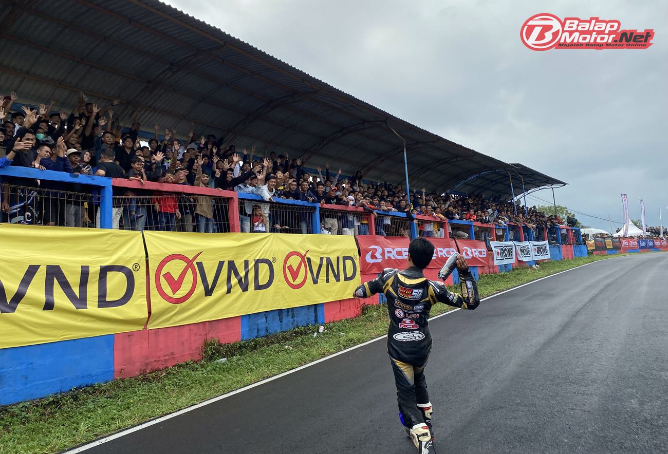 “Saya kemarin langsung cari konveksi yang bisa bikin cepat dan jadi saat race. Saya ingin membagi-bagikan kepada penonton sebelum balapan dimulai. Ini biar penonton senang dan balapan semakin meriah suasananya,” ungkap Rafid Topan Sucipto.