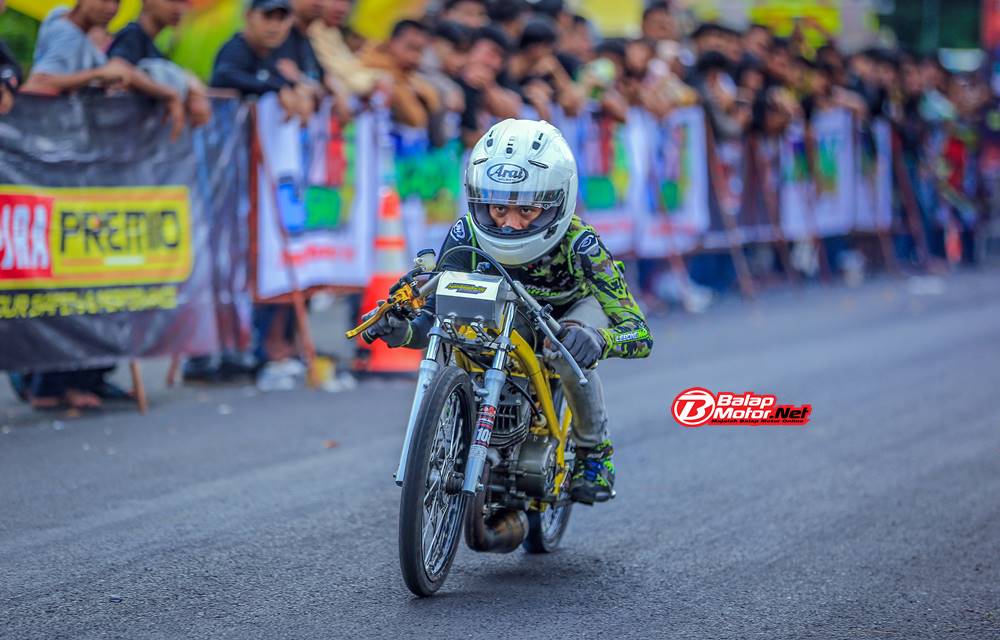 Digeber oleh Imas Prayoga asal Bangka Belitung, motor berkelir warna kuning milik tim yang bermarkaskan di kota Palembang tersebut jadi yang tercepat dengan torehan waktu 7.436 detik. Imas sangat tampil impresif di kelas ini.