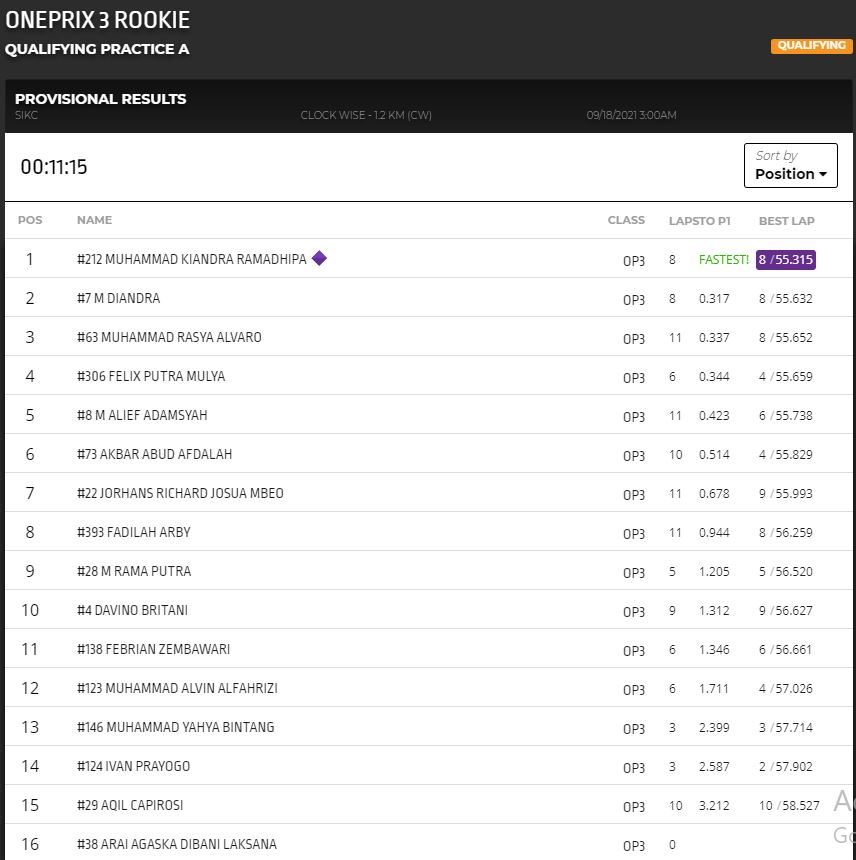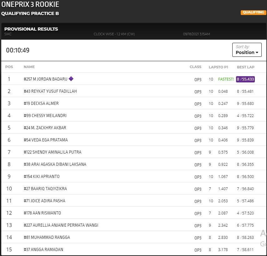BalapMotor.Net – Muhammad Kiandra Ramadhipa berhasil menjadi yang tercepat dalam sesi kualifikasi kelas Rookie (OP3) pada gelaran ronde kedua Oneprix 2021 yang berlangsung di sirkuit Sentul Karting, Bogor (18/9).