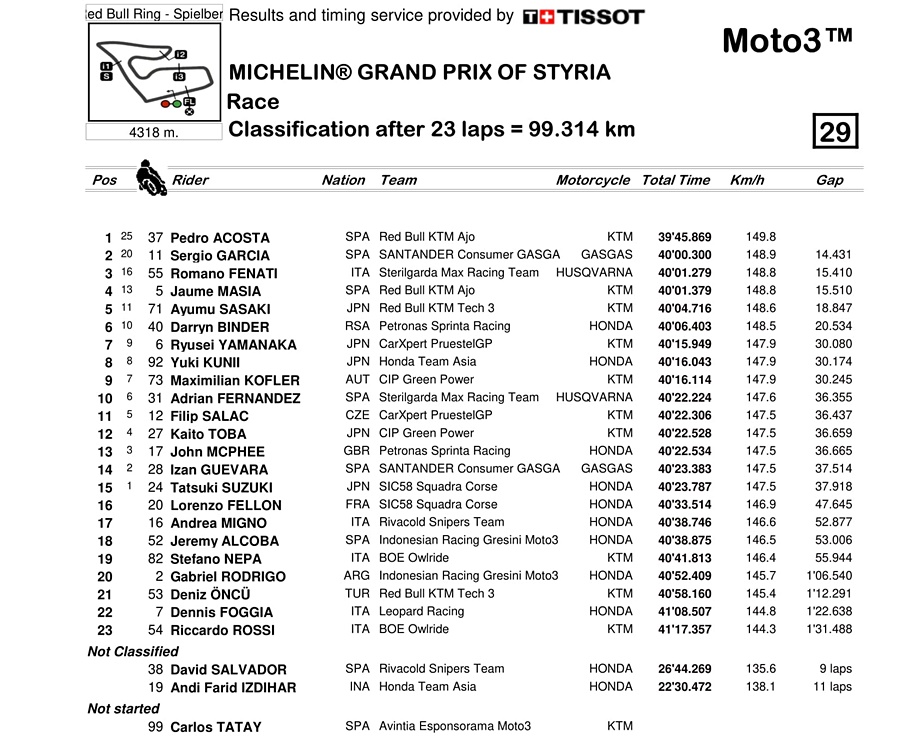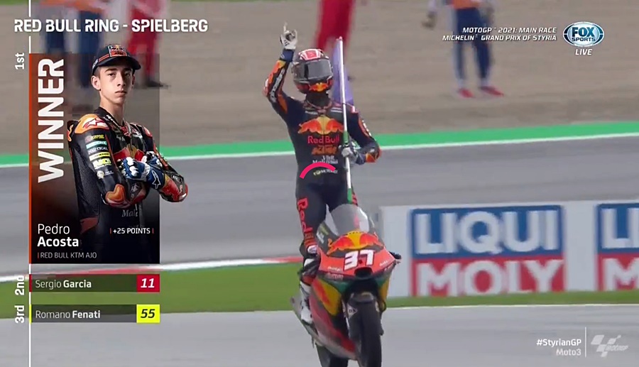 Dengan hasil ini, Pedro Acosta pun unggul 53 poin dari Sergio Garcia di tabel klasemen sementara Moto3.