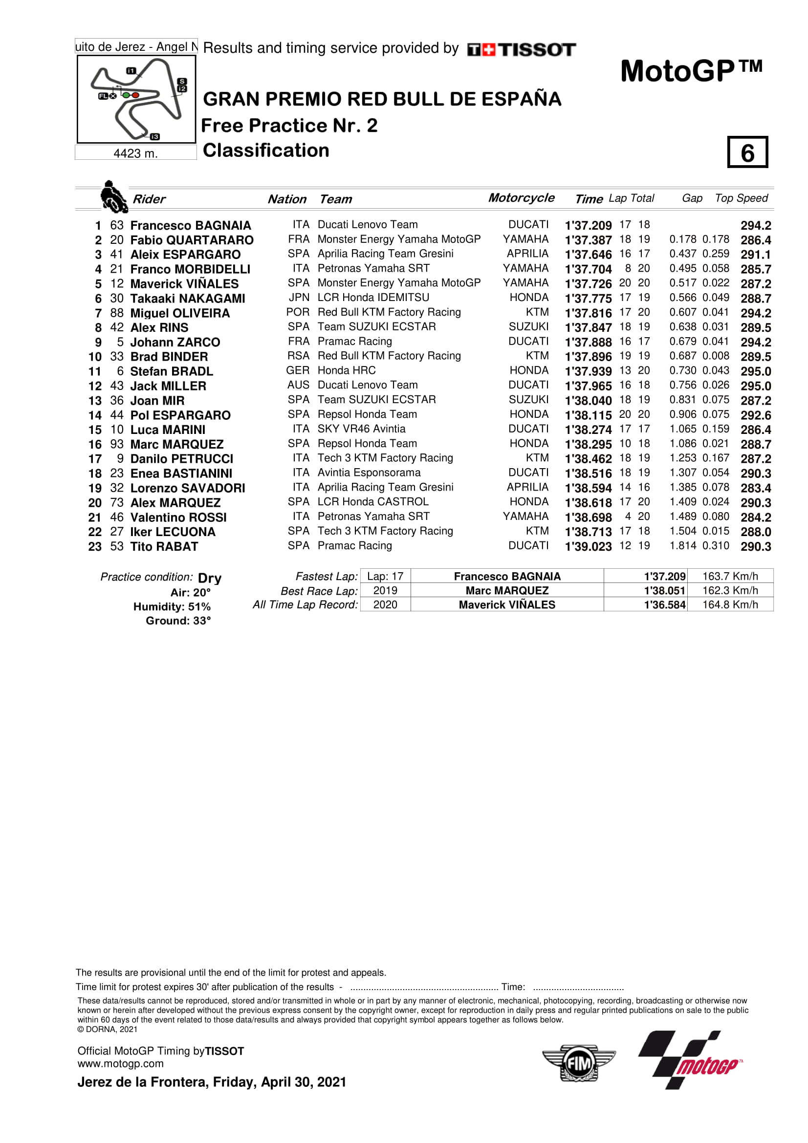 BalapMotor.Net – Dalam latihan bebas hari pertama (Jumat) Grand Prix Spanyol yang berlangsung di sirkuit Angel Nieto, Jerez Francesco Bagnaia menunjukan kapasitasnya dengan menjadi yang tercepat dalam kombinasi FP1 dan FP2.