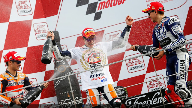 Balap-Motor.com Buat yang liat balapan seri final MotoGP 2013 di sirkuit Valencia, pasti deg-degan tuh, dan akhirnya Marc Marquez meskipun hanya finish di posisi ke-3 namun gelar juara dunia mampu disandangnya. Selain menjadi juara dunia ternyata pembalap yang baru berusia 20 tahun ini juga memborong banyak sekali gelar di tahun pertamanya balapan di kelas MotoGP, apa aja sih yah, yuk disimak.