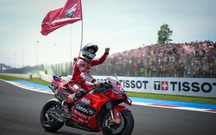 BalapMotor.Net – Race utama kejuaraan dunia MotoGP yang berlangsung di Misano World Circuit Marco Simoncelli berhasil dimenangkan oleh Enea Bastianini. Pembalap Ducati Lenovo Team itu tampil garang di akhir balapan.