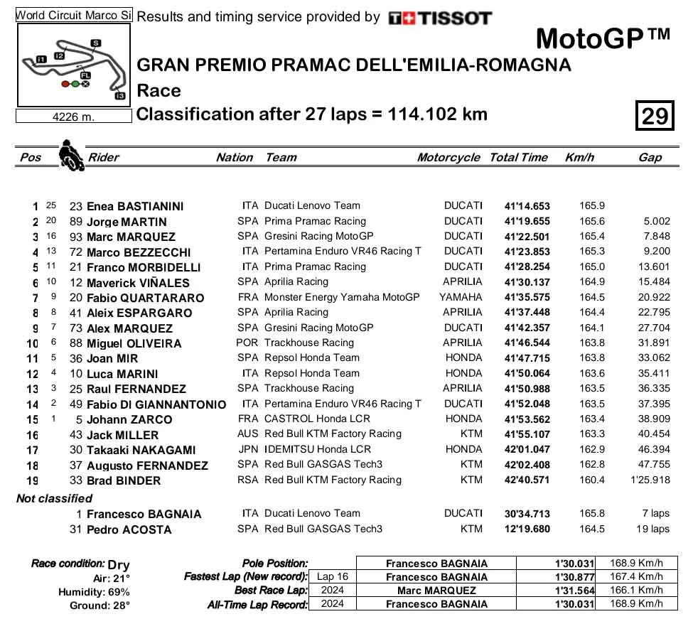 Hasil Race MotoGP Misano #2 2024: