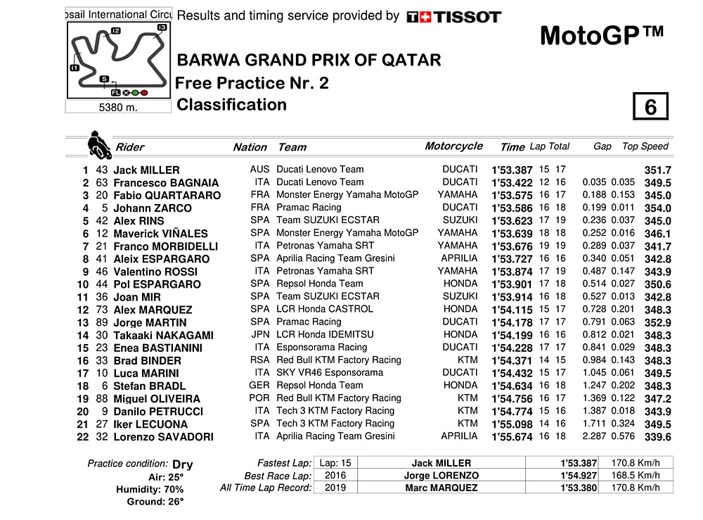 Namun, setelah tampil baik pada FP2 Zarco pun merasa begitu senang dan puas. “Akhir yang bahagia karena waktunya bagus di FP2. Untuk lolos di barisan depan saya masih harus mencari 5 persepuluh besok malam. Itu mungkin karena saya punya kejutan di motor, saya memiliki kesempatan untuk berjuang di barisan depan,” jelas pembalap Prancis itu.