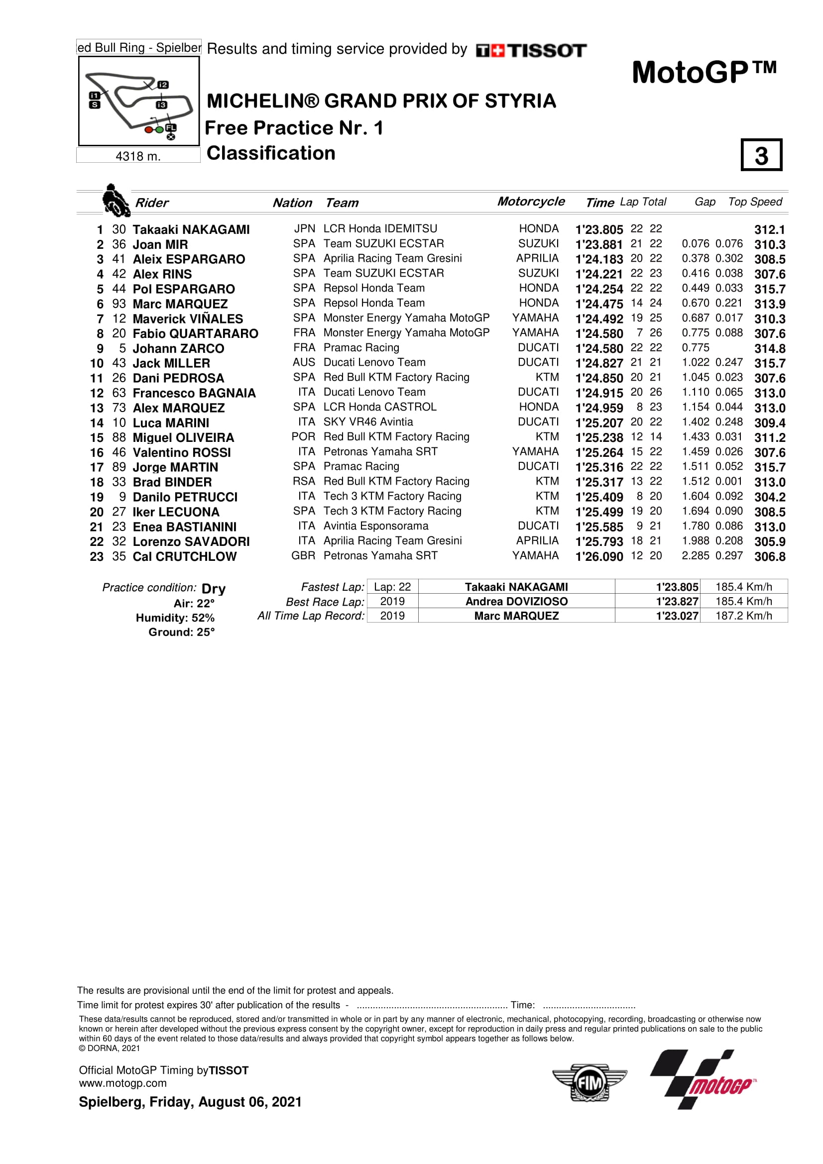 BalapMotor.Net – Miguel Oliveira mengalami nasib yang kurang baik dalam latihan bebas pertama (FP1) Grand Prix Styria yang berlangsung di sirkuit Red Bull Ring, Spelberg, Austria (6-8 Agustus).