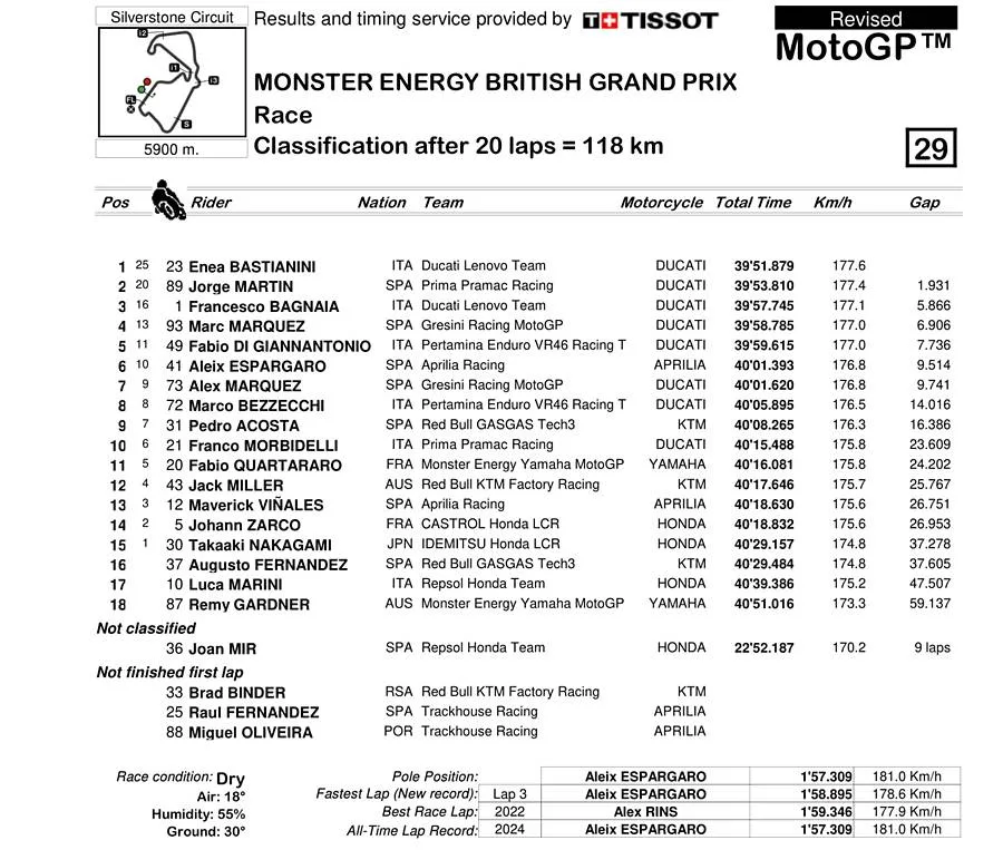 BalapMotor.Net – Luca Marini finis di posisi kelima belas pada balapan utama MotoGP Inggris di sirkuit Silverstone. Namun satu poin yang diharapkan ini gagal ia dapatkan.