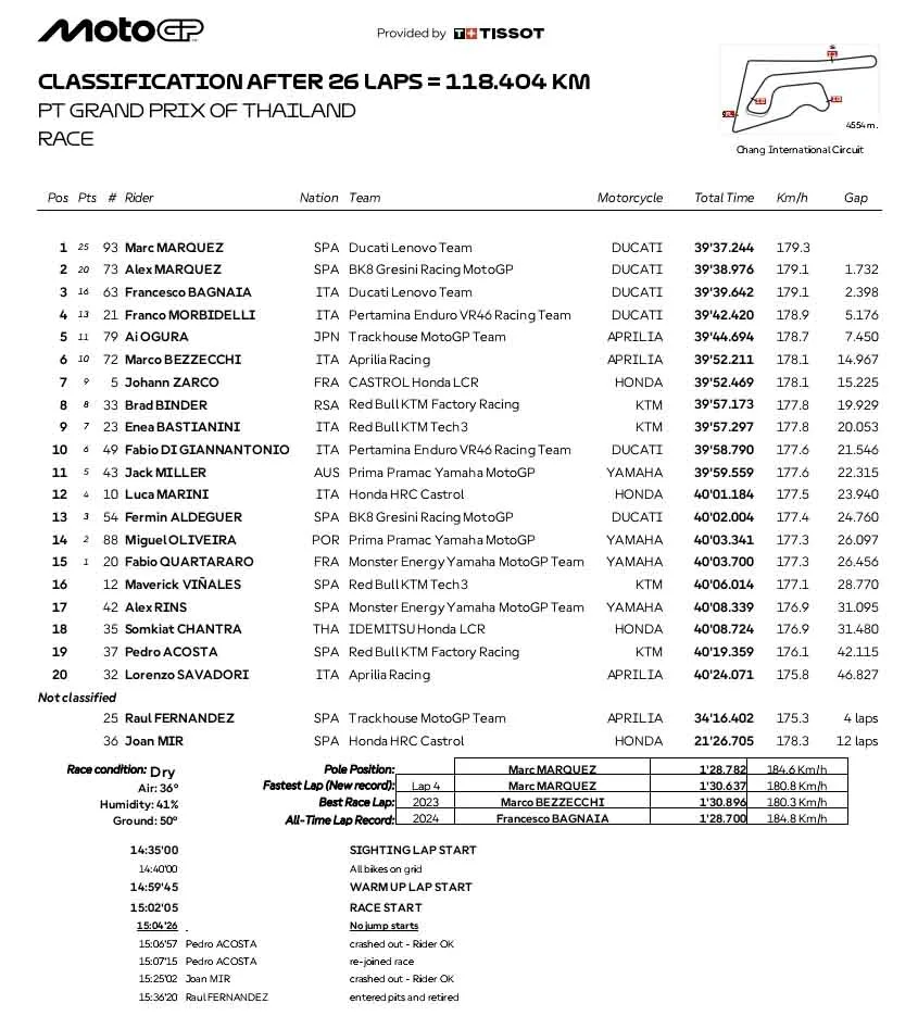 Hasil Race MotoGP Thailand 2025: