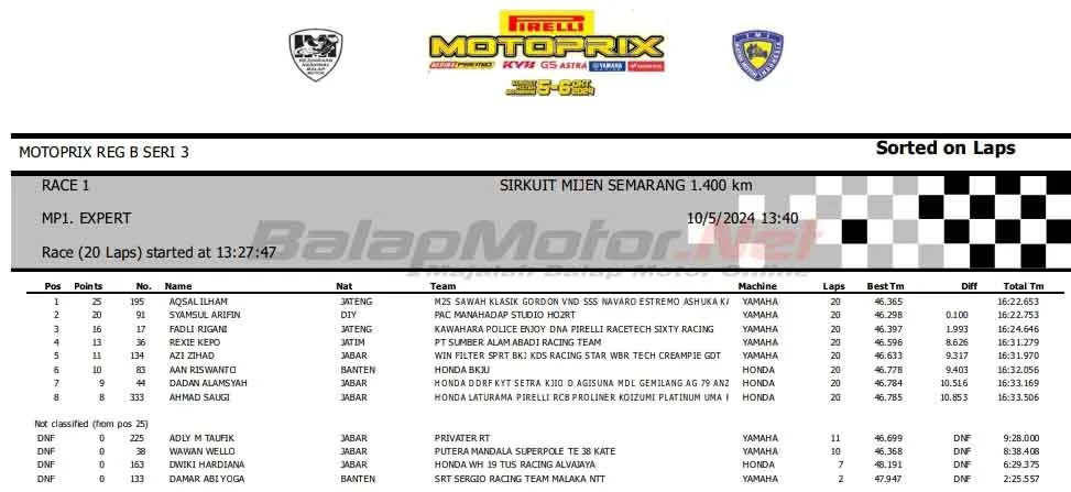 Tepatnya pada putaran ketiga yang berlangsung di sirkuit Mijen, Semarang. Di Race 1 MP1 Expert ini, Aqshal sudah cukup bagus sejak kualifikasi. Ia menempati posisi start ketiga.