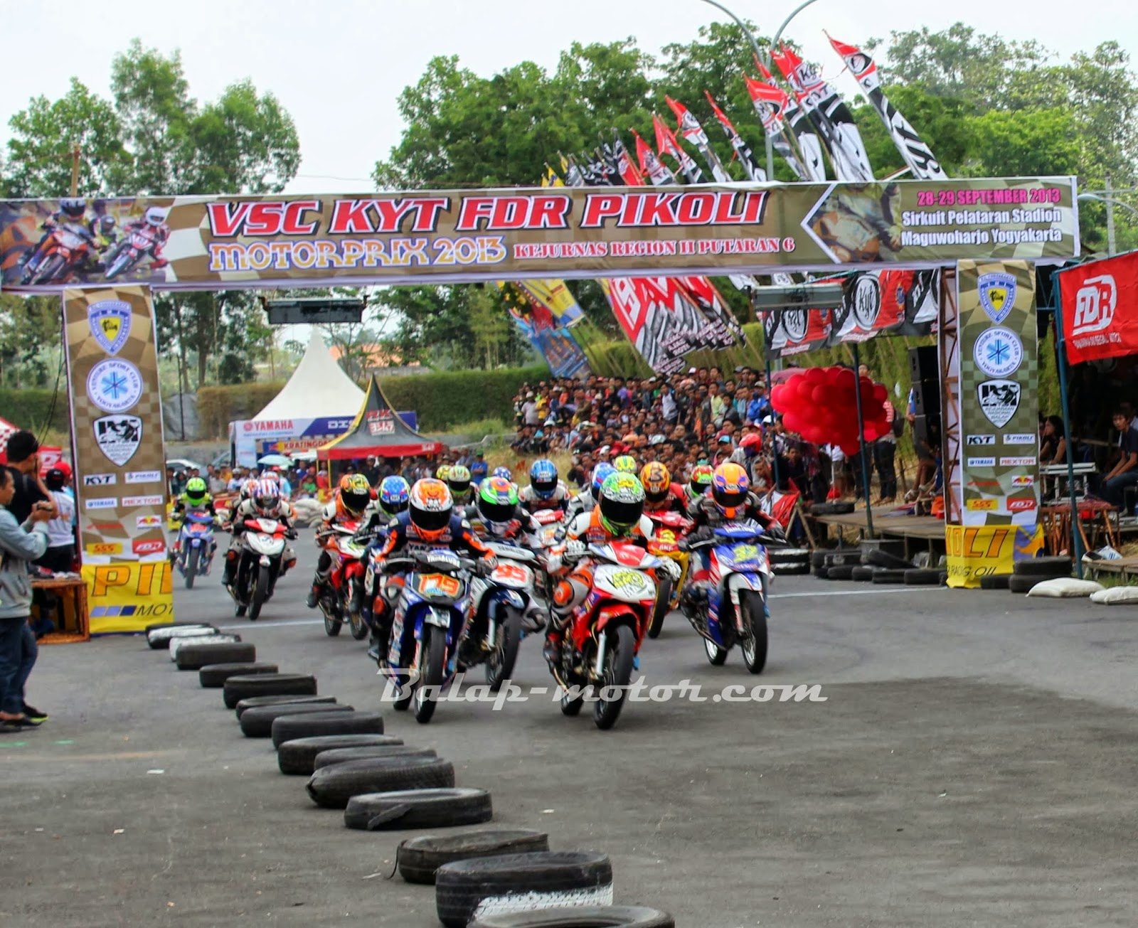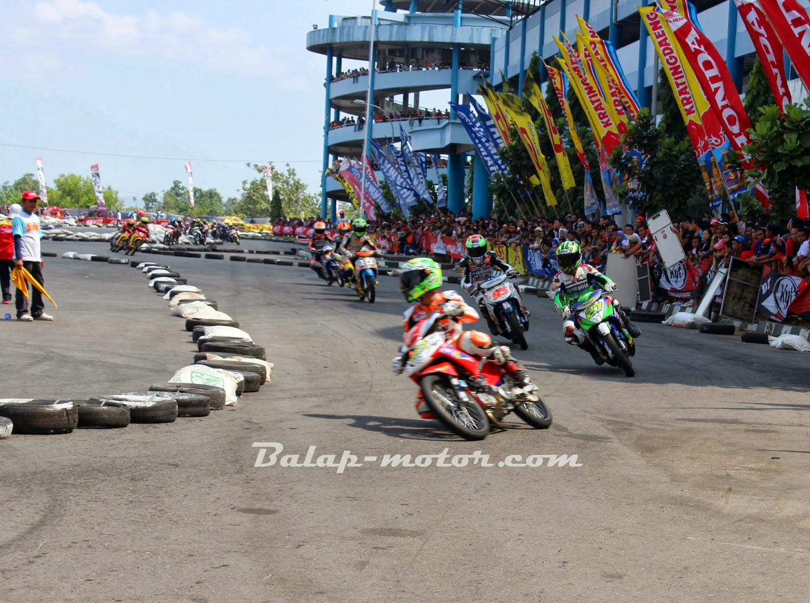 Balap-Motor.com – Jogja 29/9 Willy Hammer pembalap dari tim Honda Rinjani MPM NHK Kawahara bergantian menjadi jawara dengan Sulung Giwa darim Yamaha Yamalube NHK 3M FDR Ridlatama di dua kelas utama dalam kejuaraan Motoprix seri ke-6 Region 2 Jawa yaitu MP1 dan MP2 yang berlangsung 28-29 Sepetember 2013 di sirkuit pelataran Stadion Maguwoharjo Sleman, DIY. Dikelas MP1 Bebek 125 cc TU Sedeed, Willy Hammer berhasil menjadi yang terdepan setelah memasuki tikungan mati pertama, karena disitulah kunci kemangan , jadi setelah start harus saling tekan agar bisa masuk di tikungan pertama dan keluar tikungan tersebut didepan lawan. Setelah sempat didekati Sulung Giwa namun ternyata Willy masih sanggup didepan sampai fisnish.