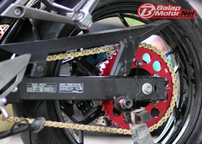“Kalau motor jarang dipakai lebih baik sih rantainya dikasih chainlube dulu mas. Sebenarnya sih aman tanpa perlu adanya perawatan, tapi akan lebih baik jika rantai dikasih pelumasan dulu mas,” terang Marcel dari SSS Racing.