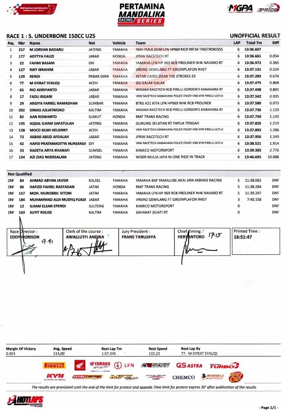 BalapMotor.Net – M Jordan Badaru sukses mendulang kemenangan di Race 1 kelas Underbone (UB150) kejuaraan Pertamina Mandalika Racing Series putaran ketiga (16/8).