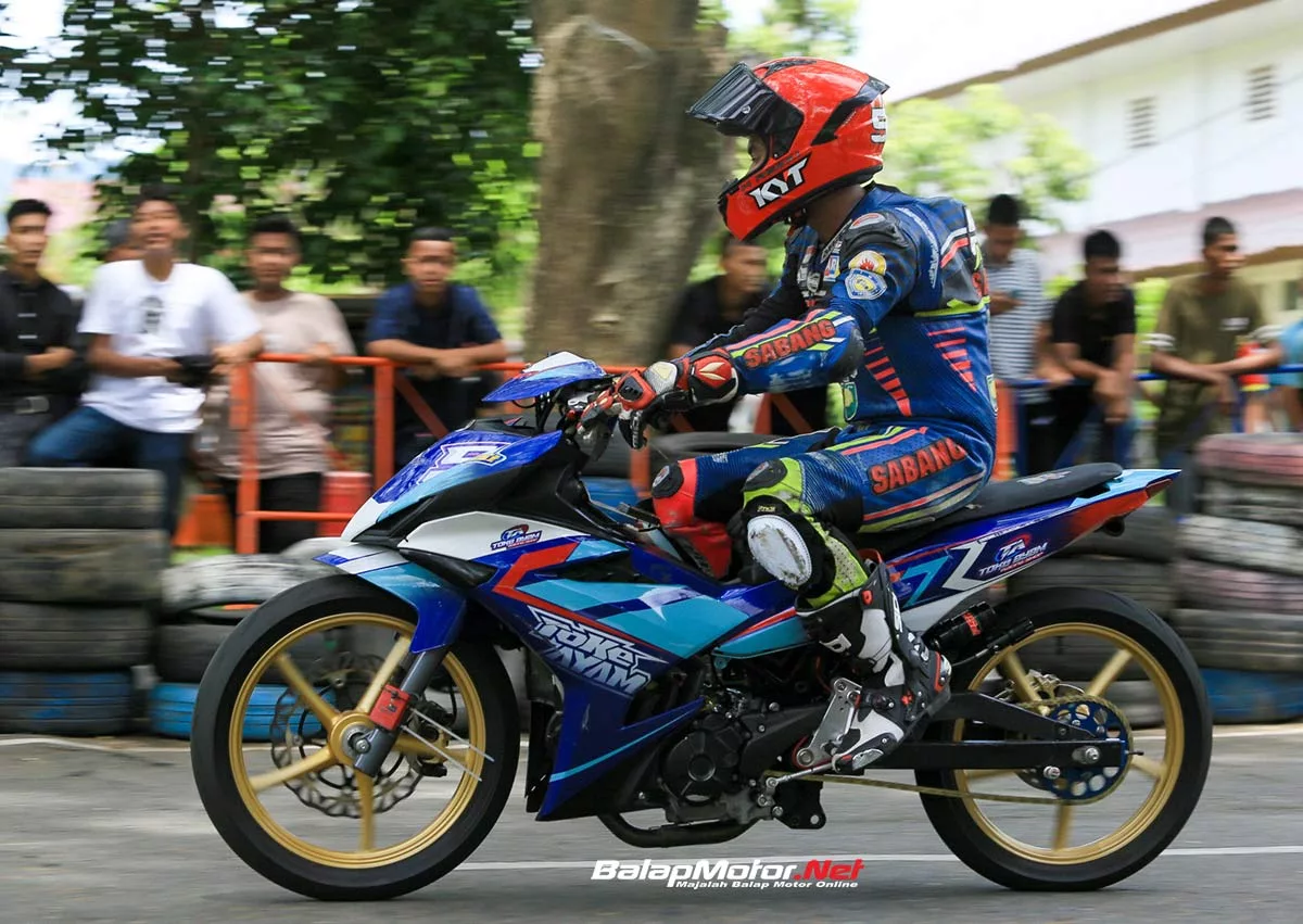 Podium satu di kelas 4T 150cc Mix tune up MP1 & MP2 Non kategori berhasil di sikat oleh pembalap ber KIS Sabang ini. Tak butuh waktu lama untuk nyeting, Rezki langsung cocok dengan motor MX King si Toke Ayam.