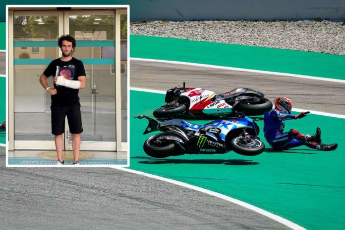 “Motornya menyentuh saya dan saya lepas landas dengan sangat buruk. Saya berasumsi pergelangan tangan kiri saya patah. Kami akan memeriksanya sekarang. Itu tidak terlihat bagus karena saya tidak bisa menggerakkan tangan saya,” keluh Alex Rins dilansir dari speedweek.