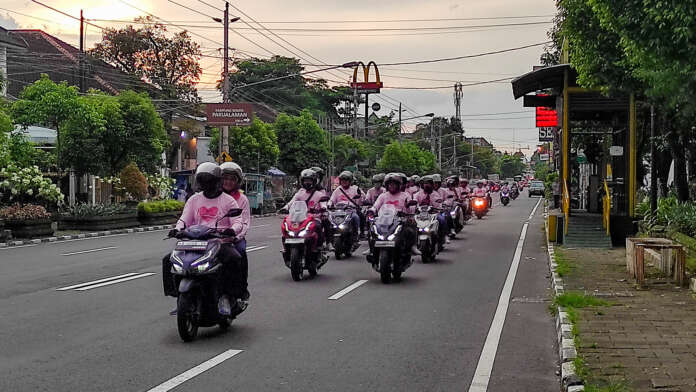 BalapMotor.Net – Memanfaatkan momentum hari Valentine, Astra Motor Yogyakarta selaku main dealer sepeda motor Honda wilayah DIY, Kedu, dan Banyumas menggelar kegiatan Honda Romantic Matic (17/2). Kegiatan ini diikuti tak kurang dari 25 pasangan pecinta skutik premium Honda Vario 160, PCX160, dan ADV160.