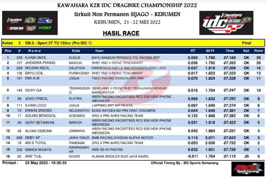 BalapMotor.Net – Kejuaraan balap lurus Kawahara K2R IDC Drag Bike Championship 2022 putaran pembuka yang berlangsung di sirkuit Sijago, Kebumen harus berjalan dalam kondisi basah untuk beberapa kelas.