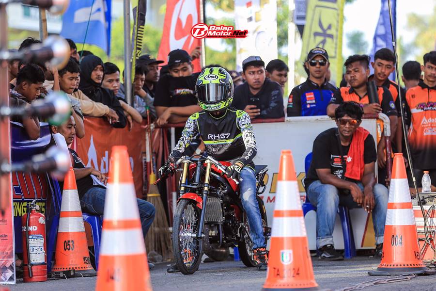 Kawasaki Ninja milik Rizky Bakron ini jadi yang tercepat lewat Dicky Darma. Pembalap asal kota pempek Palembang ini menorehkan catatan waktu yang cukup tajam yaitu 7.028 detik dengan reaction time 0.002 detik.