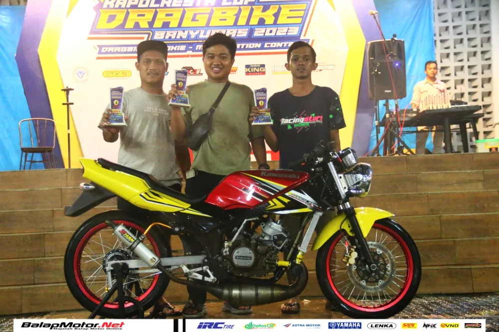 BalapMotor.Net – Setelah absen dibeberapa event, Ninja Sunmory milik squad Gold Family KSK Gank berhasil menorehkan hasil menawan pada kejuaraan Kapolresta Cup Drag Bike Banyumas 2023.