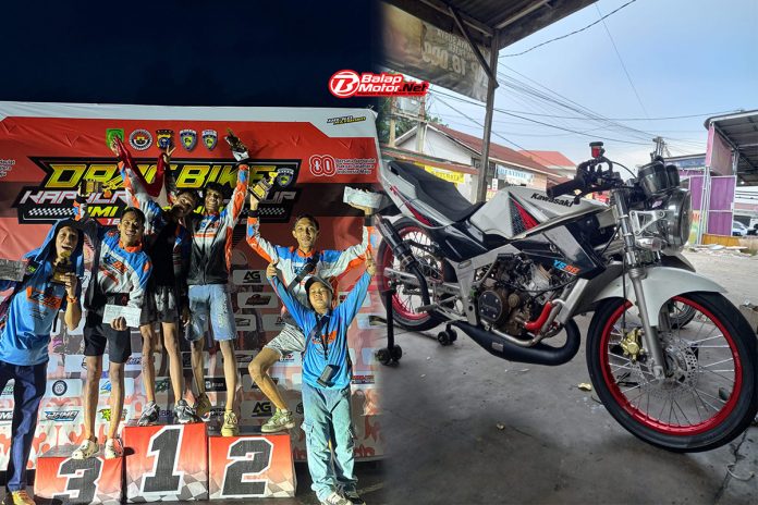 Menariknya, motor ini baru tiga kali turun di trek resmi 201 meter. “Kita masih dalam tahap riset, tapi alhamdulillah kemarin bisa langsung mendominasi kelasnya,” ungkap sang tuner, Jhon OP.