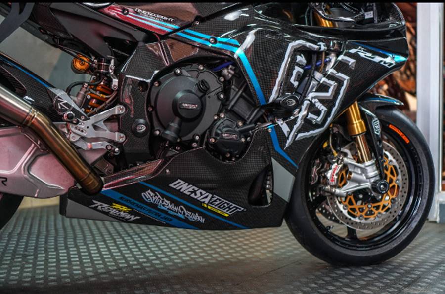 Demikian, Yamaha R1M 2020 yang memiliki spek WSBK, sudah tak terlihat tulisan Mevanslitta. Bahkan telah mengalami repaint hitam metalik berkombinasi carbon kevlar, dengan berbagai up grade option part kompetisi level atas.