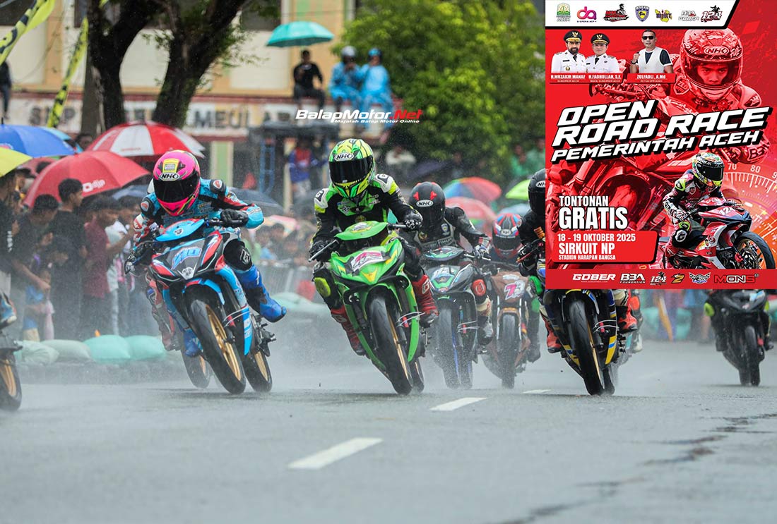 BalapMotor.Net – Gelaran balap bergengsi bertajuk Open Road Race Pemerintah Aceh siap diselenggarakan pada akhir pekan ini (18-19 Oktober 2025) di Sirkuit NP Harapan Bangsa Lhong Raya, Banda Aceh.