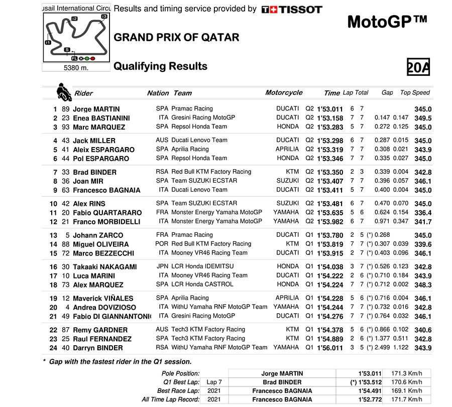 “Kami baru saja melewatkan sesuatu di kualifikasi, tapi saya tidak tahu persis apa. Saya selalu memberikan 100 persen, tapi itu sulit. Saya hanya tidak senang dengan putaran kualifikasi saya, meskipun saya melakukan yang terbaik,” kata Fabio dilansir dari speedweek.