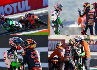 BalapMotor.Net - Pada saat latihan bebas ketiga (FP3) kelas Moto3, terjadi kecelakaan yang melibatkan dua pembalap. Mereka adalah Jaume Masia dan Kaito Toba.Dua pembalap yang memacu mesin KTM tersebut bersenggolan di tikungan ke-11. Kedua pembalap kemudian mempertunjukkan aksi tidak...