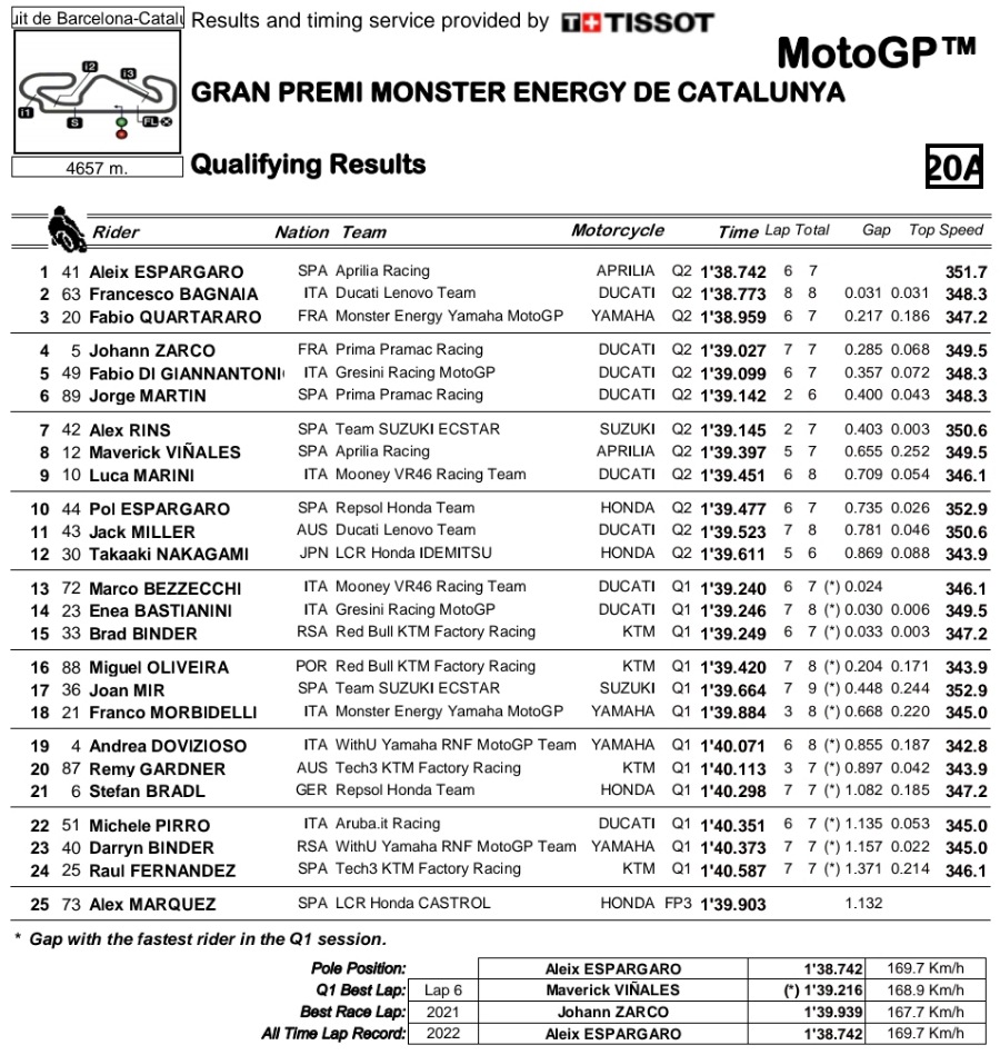 “Saya sangat senang, kami melakukan pekerjaan dengan baik. Tapi sangat sulit untuk mengendarai lap yang sempurna di kualifikasi. Karena dengan kondisi grip seperti ini, Anda bisa kehilangan banyak di trek ini jika sedikit kehilangan akselerasi,” kata Pecco.