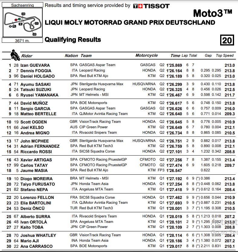 Berikut merupakan hasil kualifikasi MotoGP Jerman 2022 Semua Kelas.