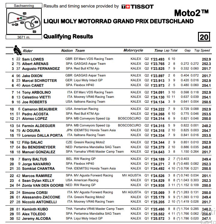 Berikut merupakan hasil kualifikasi MotoGP Jerman 2022 Semua Kelas.