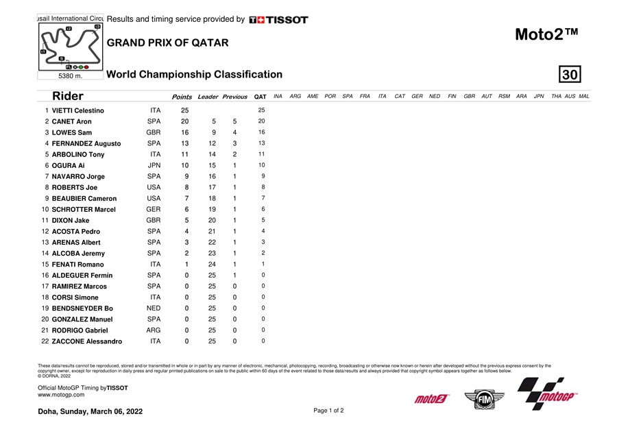 Begitu pula saat latihan bebas di putaran pertama yang berlangsung di sirkuit Losail, Qatar. Juara Dunia Moto3 2021 tersebut menempati urutan kedua secara keseluruhan. Sayangnya dia terjatuh saat kualifikasi yang membuatnya harus memulai balapan dari gird 10.