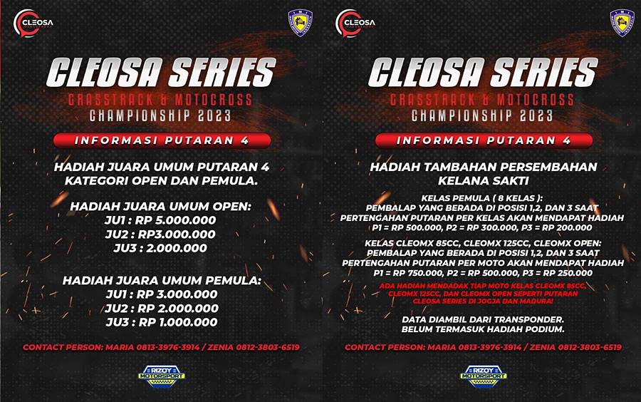 Ini merupakan putaran keempat dari rencana lima putaran musim ini. Perebutan poin untuk menjadi jawara Cleosa Series 2023 pun akan berjalan sengit. Apa lagi banyak kategorinya yang diperebutkan. Namun tidak sampai disitu saja!