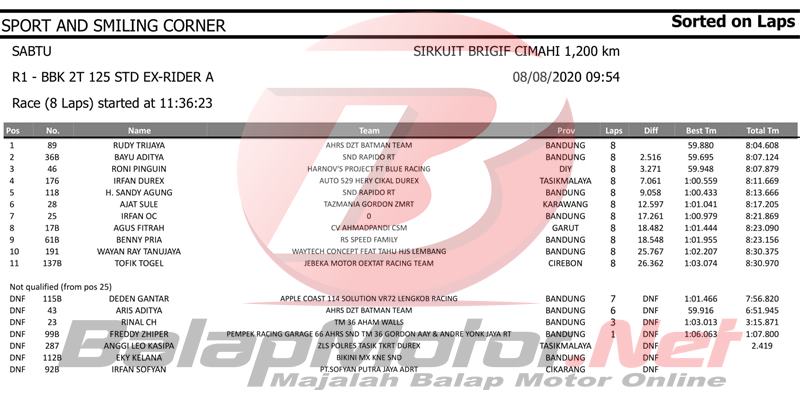 Rudy Hadinata sendiri mengikuti balapan Sport & Smiling Corner yang berlangsung di Cimahi pada 7-8 Agustus lalu. Bos Rudy, sapaan akrab Rudy Hadinata mampu jadi jawara di race 1 dan kedua di race 2 kelas Ex-Rider A.