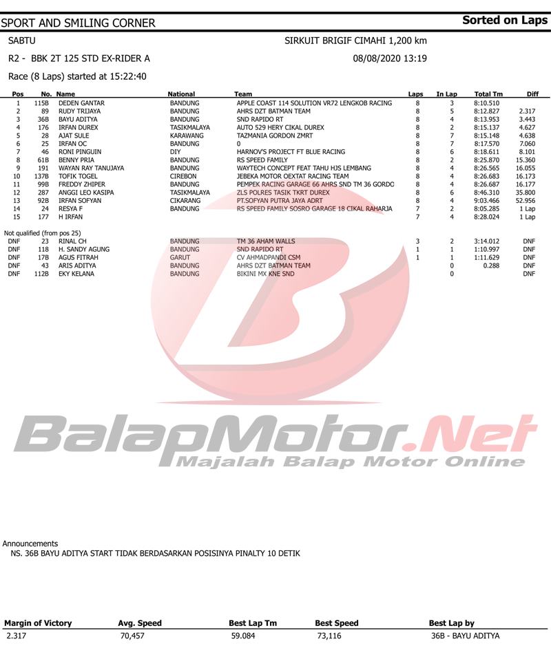 “Semoga saja para pembalap saya pada tidak ngiri mas, hehehehe. Ini merupakan balapan pertama saya di kelas grade A, tahun sebelumnya saya masih di grade B,” ujar Rudy Hadinata kepada penulis.